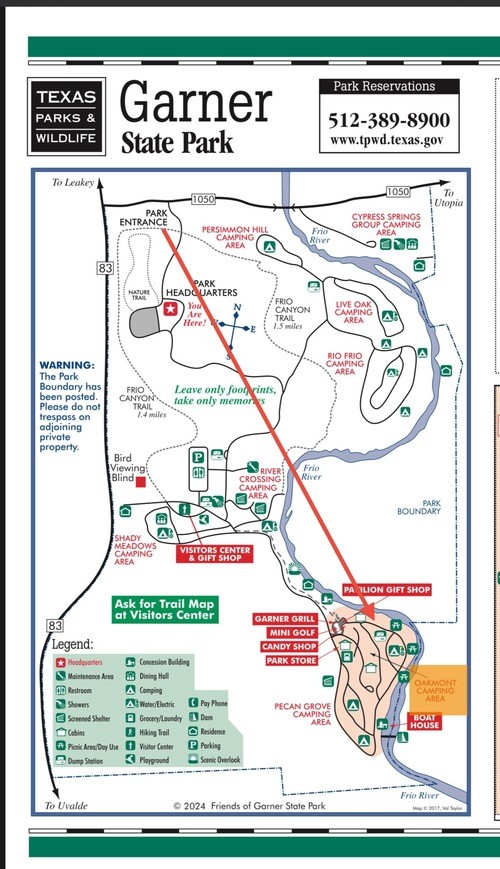 Join us at Garner State Park on Sunday, March 30. Spaces are limited so please reserve your day pass on the Texas State Parks website ahead of time! We plan to leave the church and travel via caravan, departing from the church at 8am. Having a prepurchased day pass will guarantee entry into the park. Scroll down further to see a map of Garner State Park and where in the park we will meet.